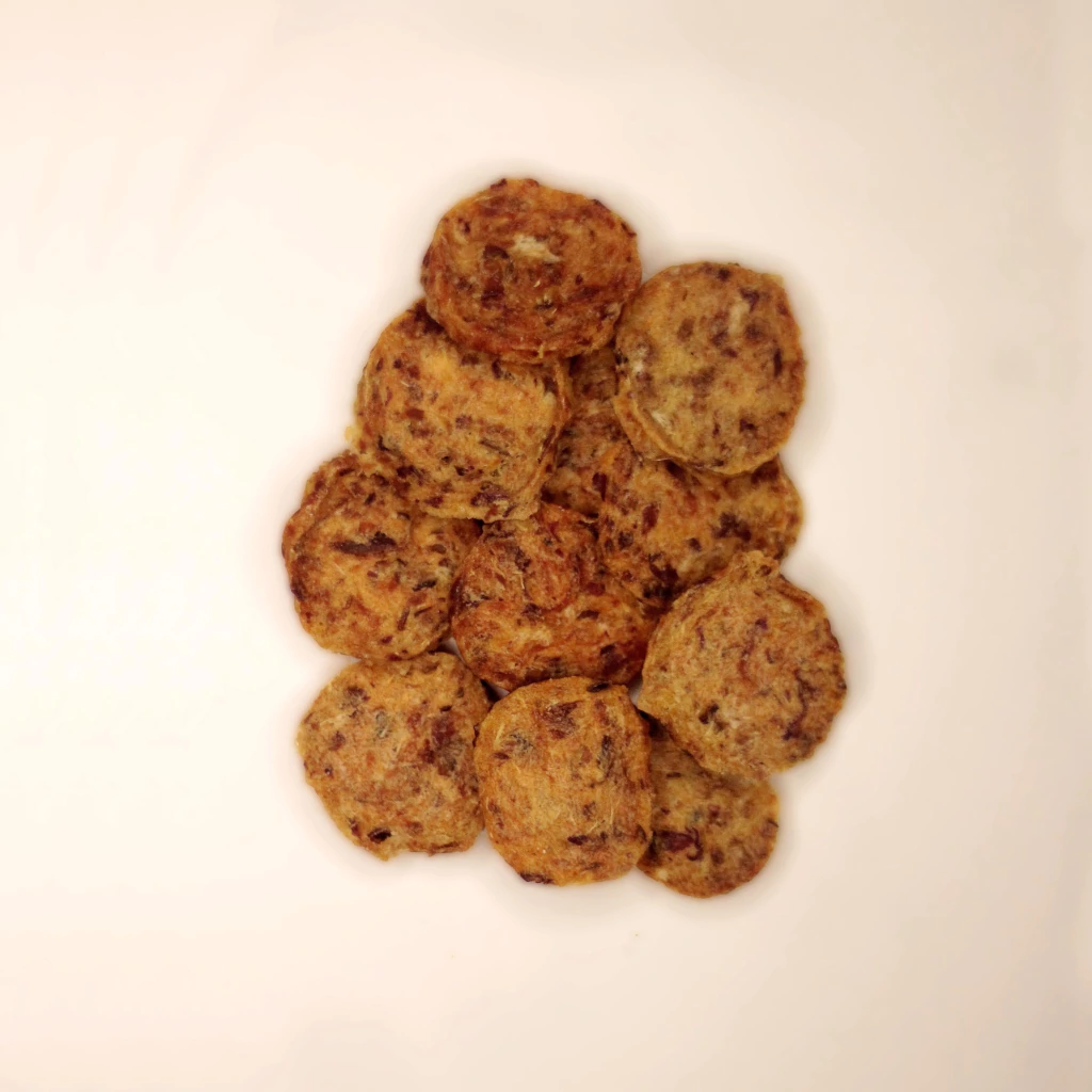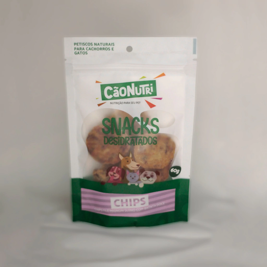 TODOS OS SNACKS CÃONUTRI SÃO FEITOS ARTESANALMENTE E COM APENAS 1 INGREDIENTE NA SUA COMPOSIÇÃO. SEM FARINHAS, CONSERVANTES OU PALATABILIZANTES. Salvo as exceções dos sabores chips que possuem 2 ingredientes cada.